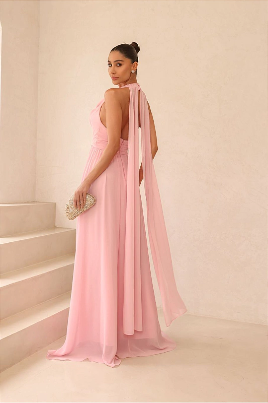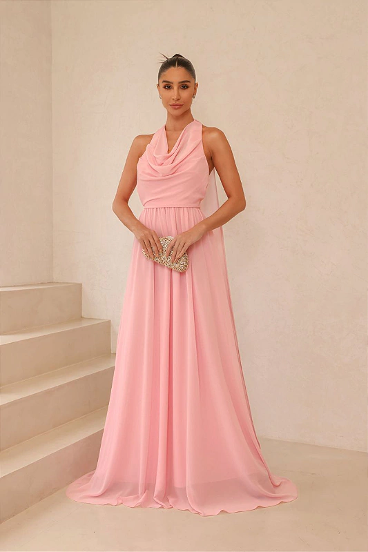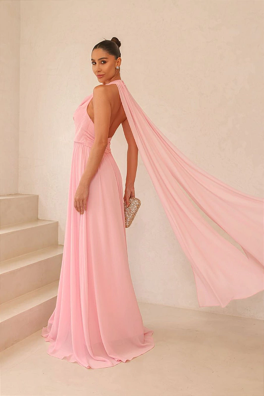 Vestido fluido em crepe exala elegância e leveza. O detalhe da capa adiciona um toque sofisticado e dramático, criando um visual etéreo que se destaca. Com fechamento em botão no pescoço e zíper discreto nas costas, ele oferece praticidade e um caimento perfeito. É a escolha ideal para quem busca uma peça única, cheia de estilo e movimento.