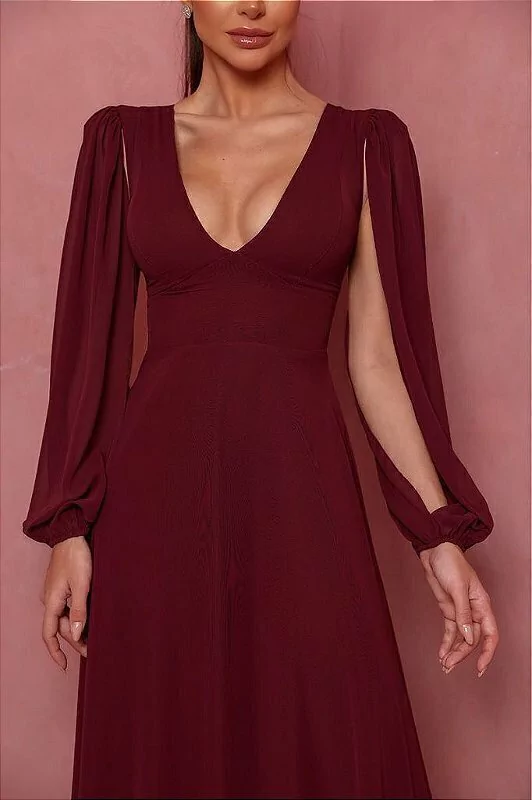 Modelo em saia evasê, com detalhe aberto na manga,saia fluida, com ziper invisível, vestido acinturado. Ideal para eventos diurnos, perfeitos para madrinhas de casamento,convidadas ou formandas.